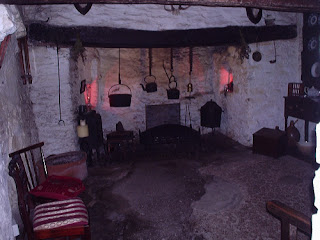 We visited Chambercombe Manor which is haunted. I took this photo in the kitchen. Can you see a ghostly man in the right hand corner of the fireplace ? Spooky..... You can click on the photo to enlarge it.